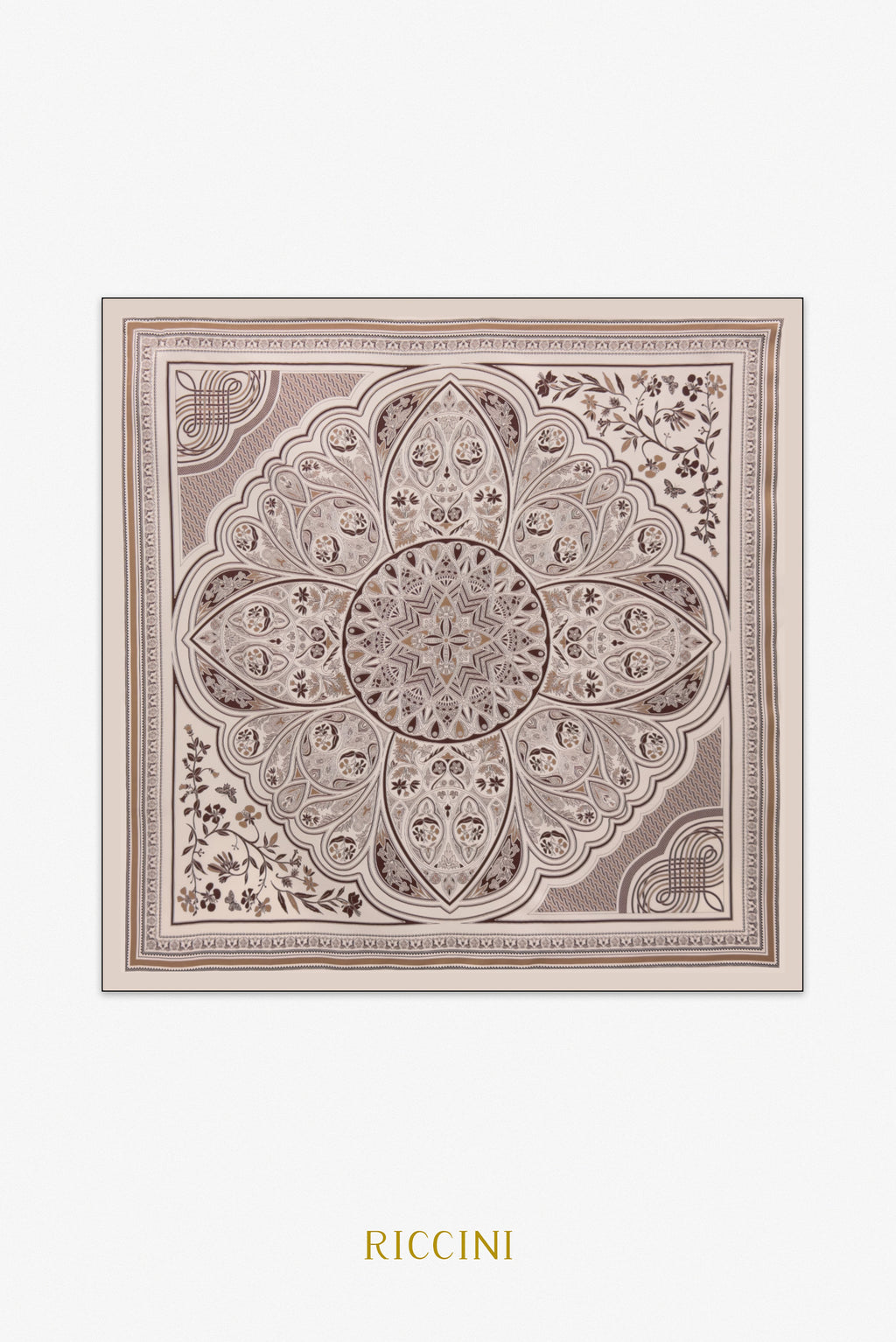 純真絲雙面印花方巾-曼陀羅優雅,啡色/深粉色