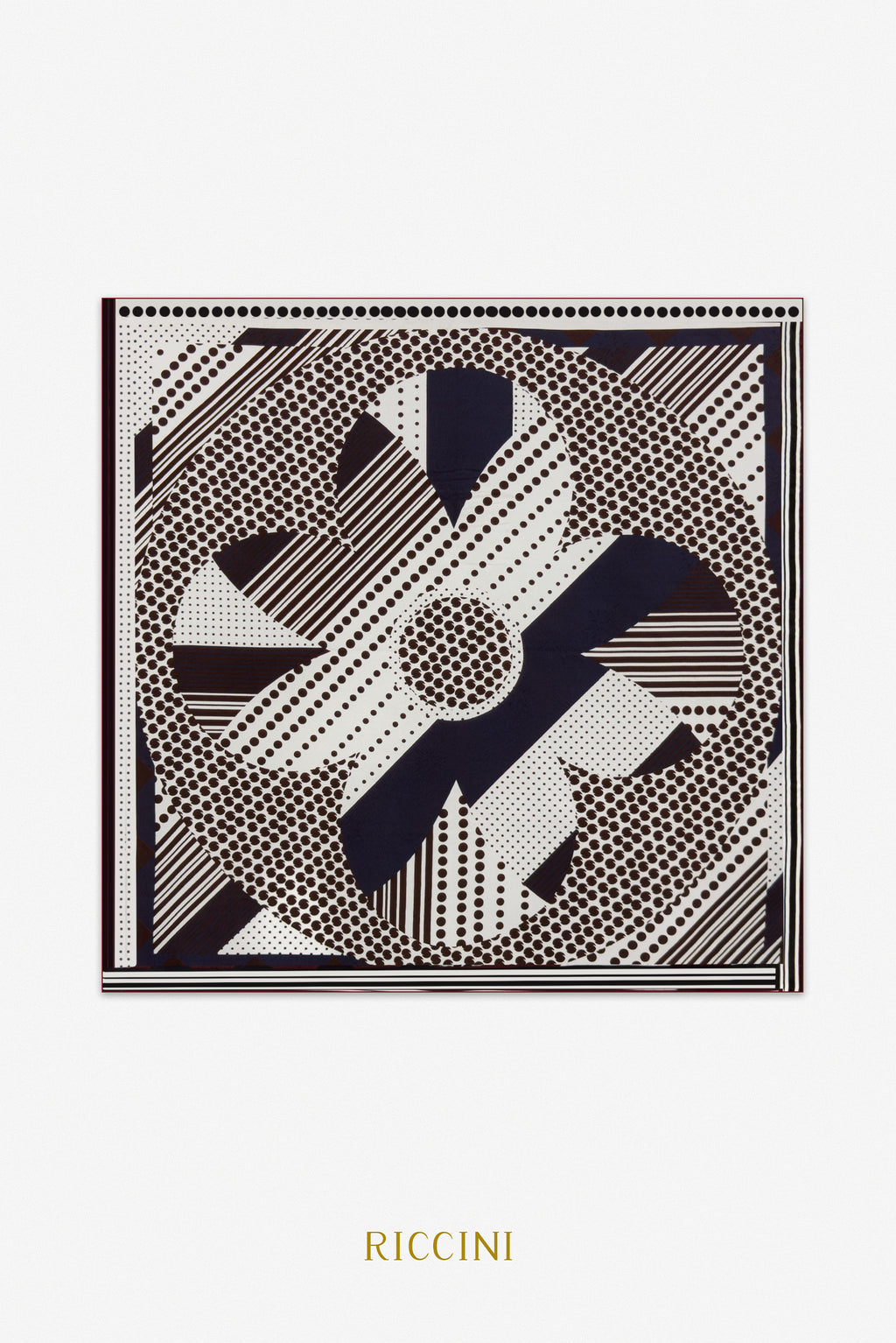 純真絲雙面印花方巾-現代四葉草,黑色/啡色