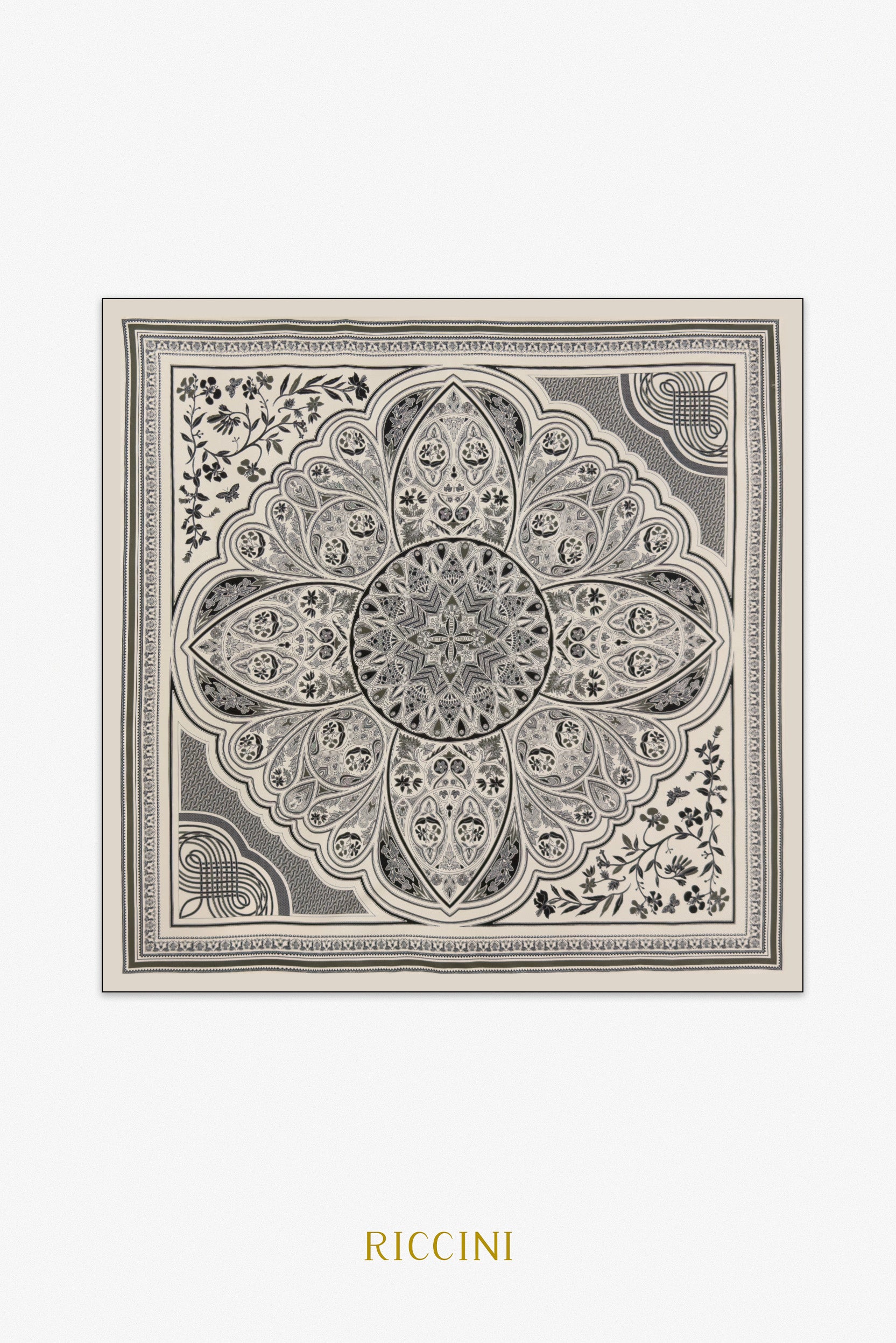 設計靈感取材於東方傳統藝術與幾何美學的結合,運用暗藍與啡色的經典配色,營造出沉穩且優雅的氛圍。中心以對稱的花卉與幾何圖案作為設計核心,細膩的紋理與層次感構築出一幅充滿藝術氣息的畫卷。每一處細節都展現出文化的深厚底蘊與設計的精緻格調,將低調的高級感與浪漫的藝術氣息完美融合,是日常與正式場合的理想搭配點綴。