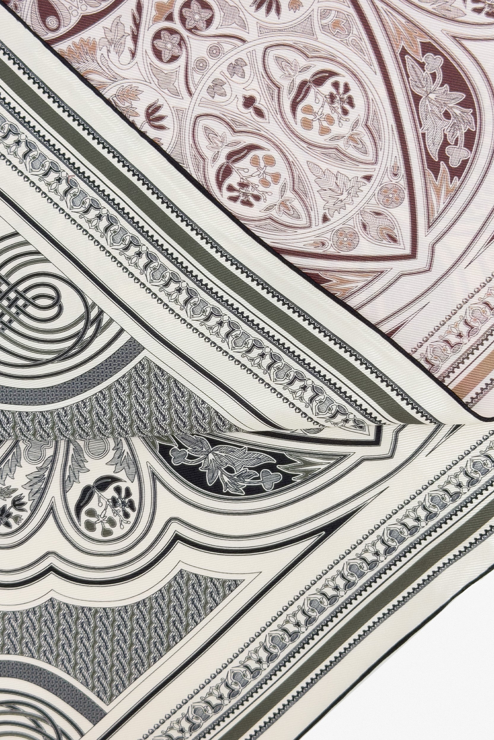 融合精湛工藝與獨特設計。雙面印花技術精準對位,經特殊處理圖案清晰且面料光滑細膩。雙層結構提升了質感和耐用性,避免反面露白,無論佩戴方式如何都能保持完美視覺效果,彰顯奢華與品味。
