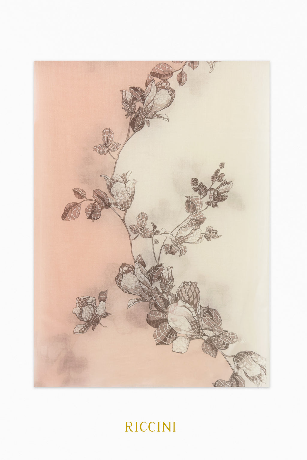 純真絲印花方巾-東方優雅粉,粉桔色