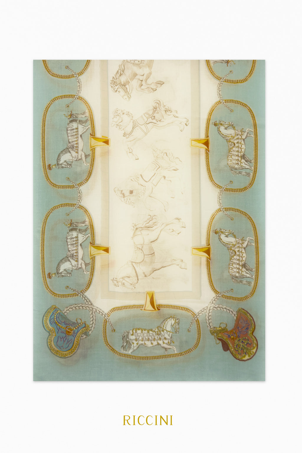 純真絲印花方巾-馬鞍靜謐,綠色