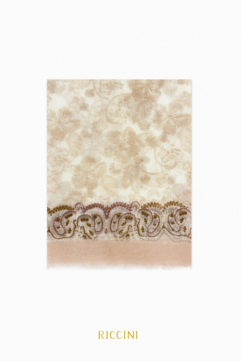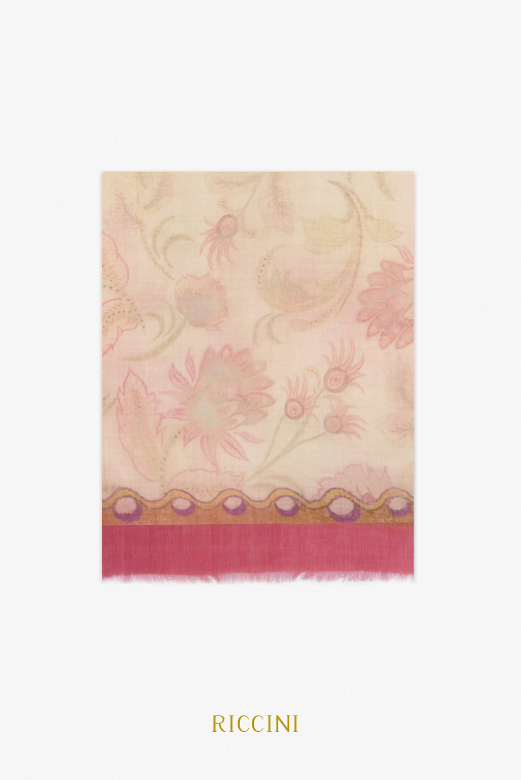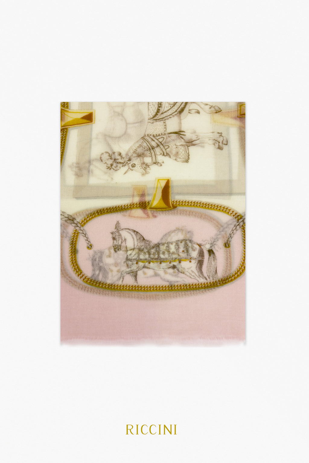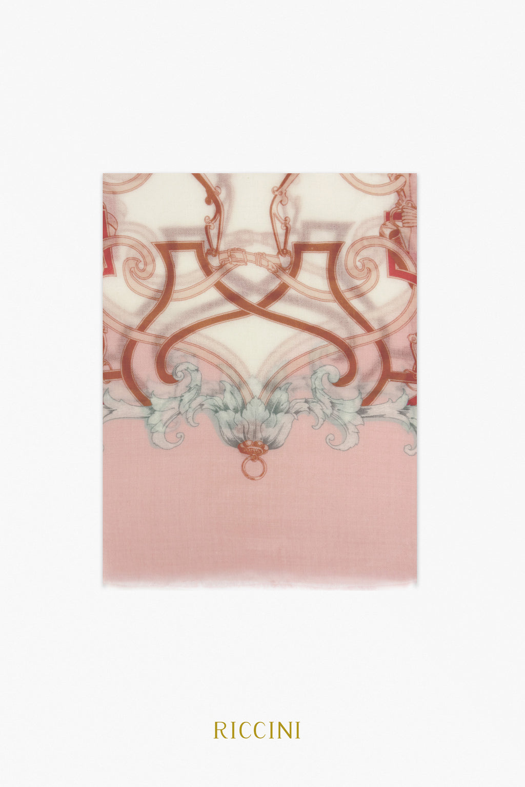 羊絨混羊毛印花圍巾-馬鐙魅力,粉色