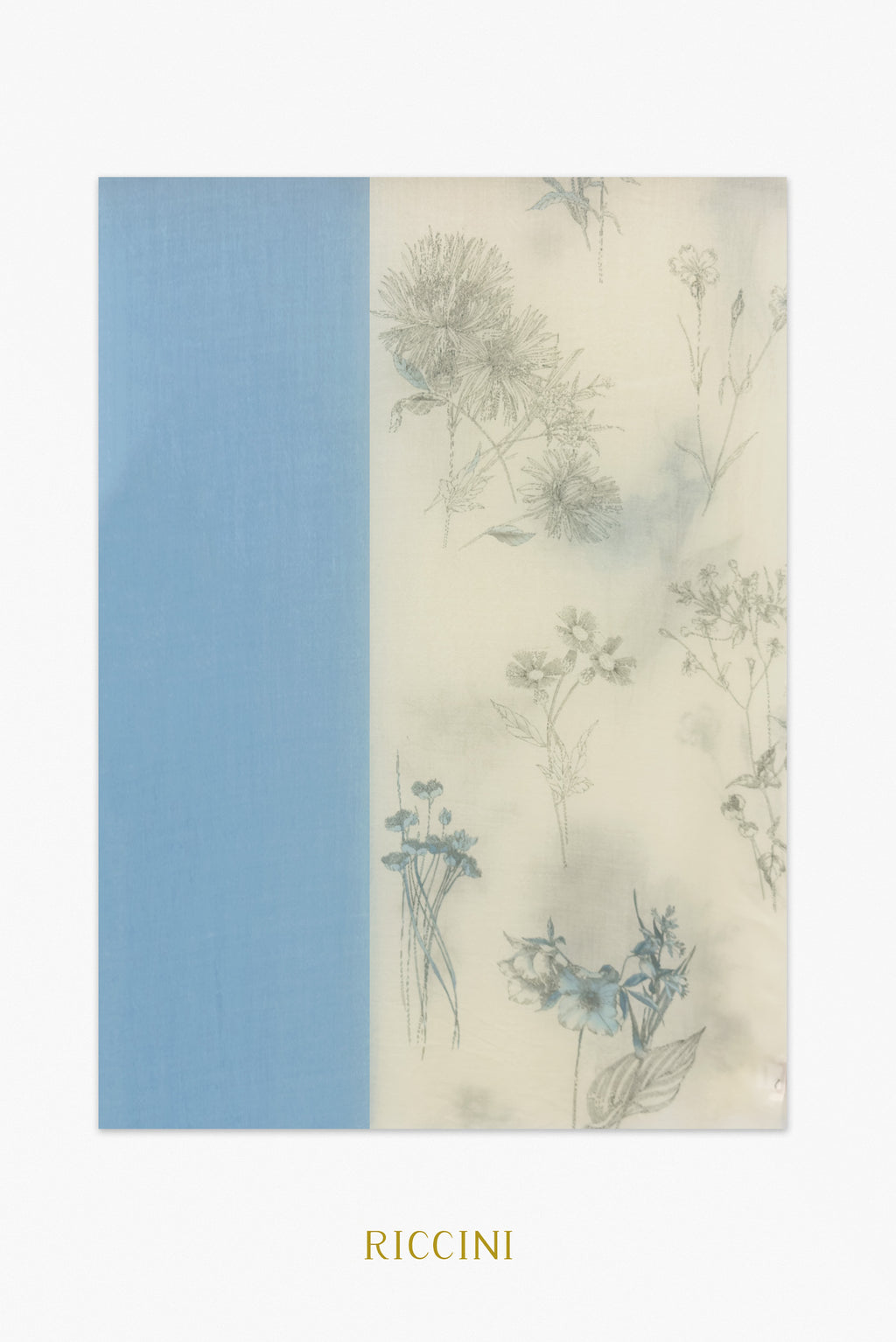 羊絨混羊毛印花圍巾-三色印花,淡藍色