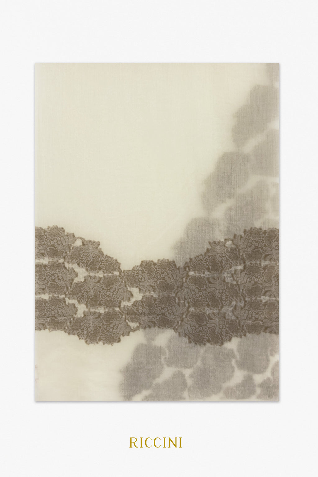 羊絨混紡提花披肩-花蕊,米白色/啡色