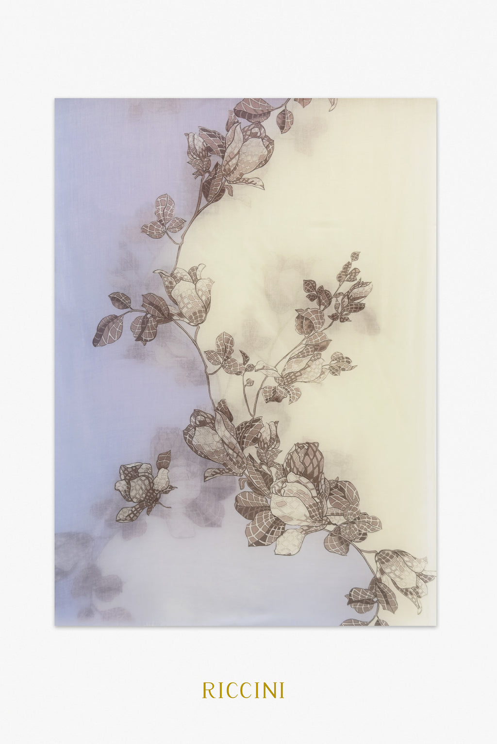 純真絲雙面印花方巾-迷霧之境,紫色/杏色