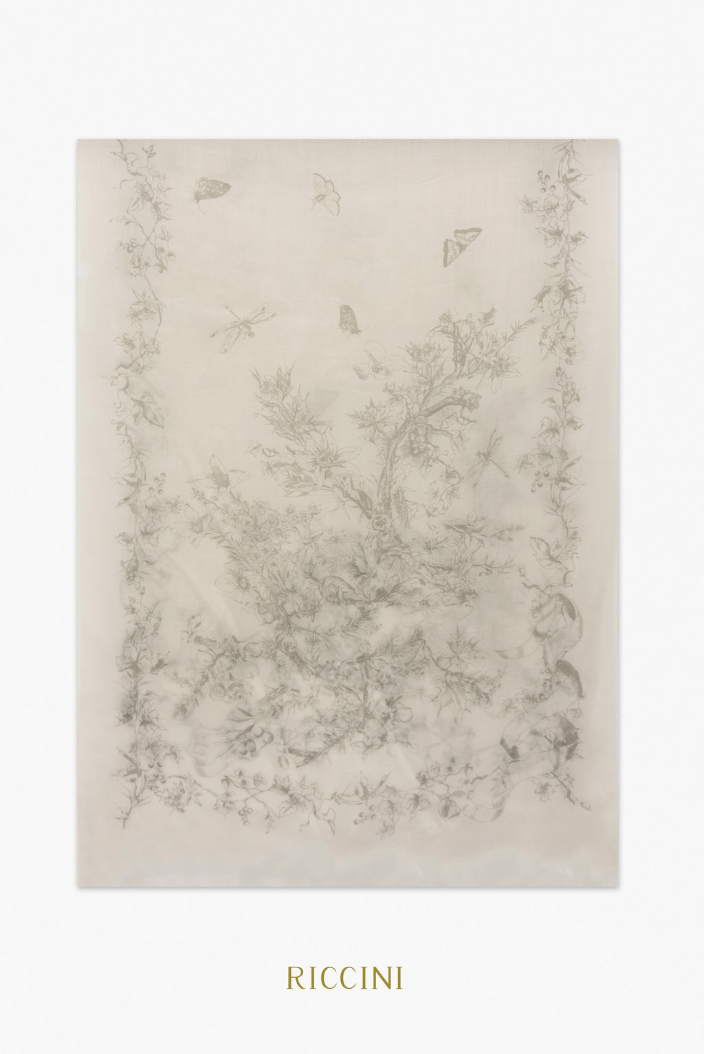 純真絲印花方巾-東方優雅黃,淺黃色