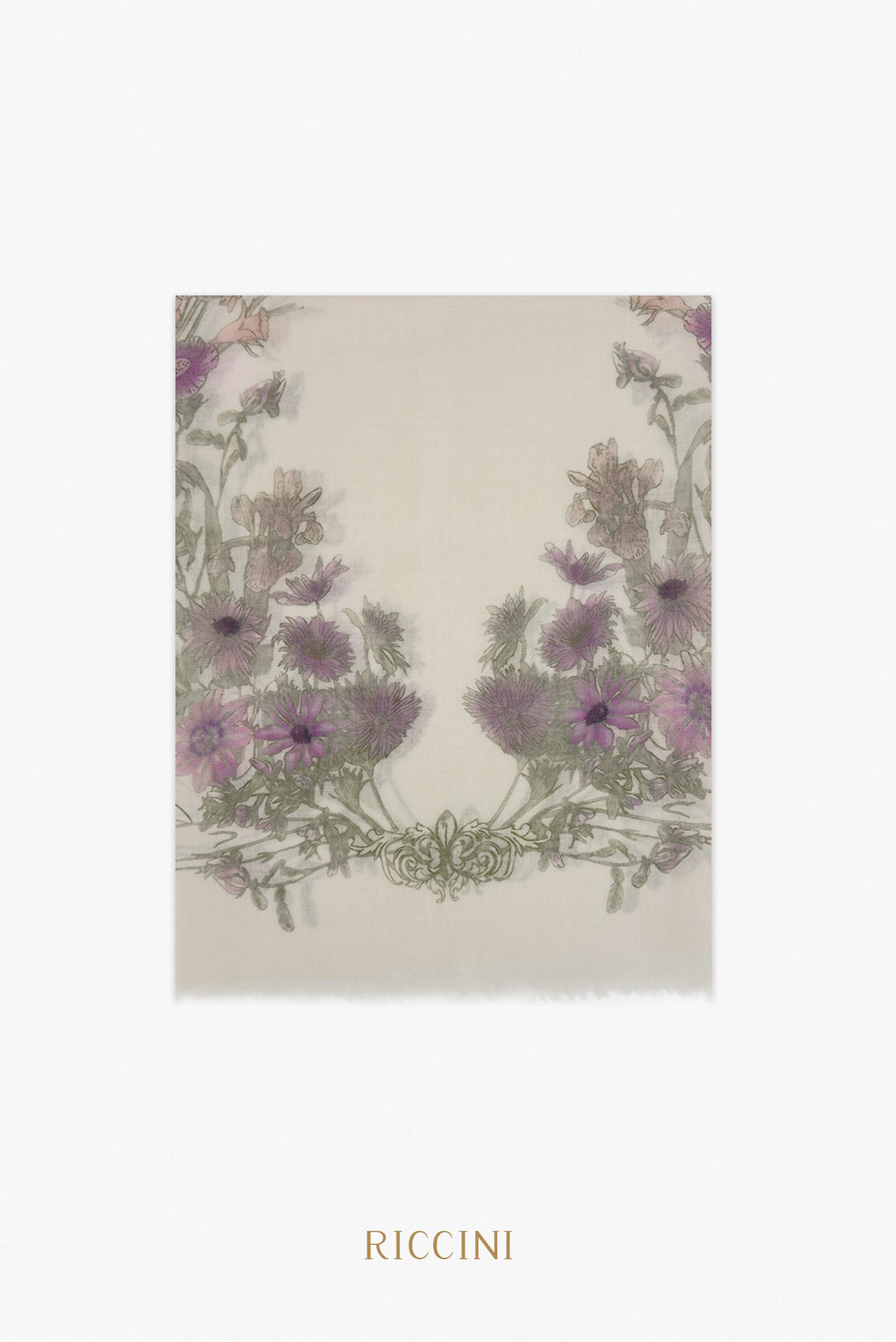 羊絨混羊毛印花圍巾-紫色花圈,紫色