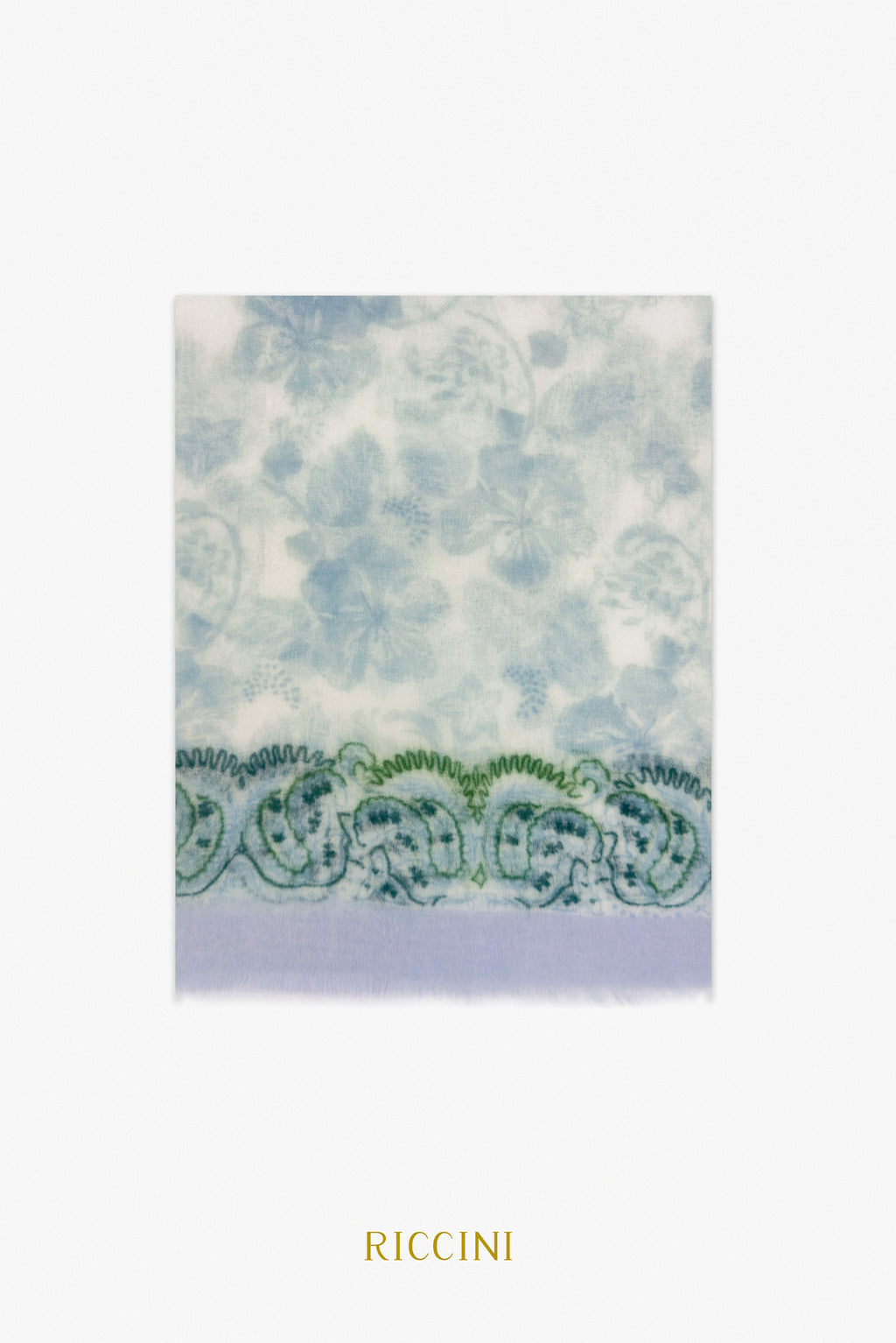 純羊絨圍巾-腰果花,藍色